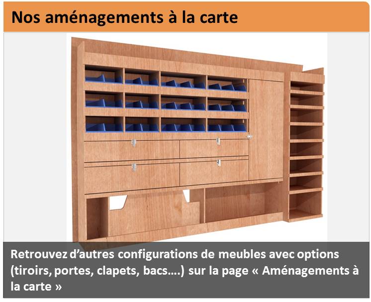 Pour l’aménagement bois de votre véhicule professionnel, choisissez un professionnel ! Gamme pro- Packs – meubles en bois solides et pratiques fourgon compact L1H1