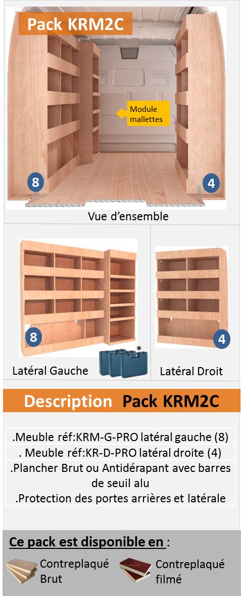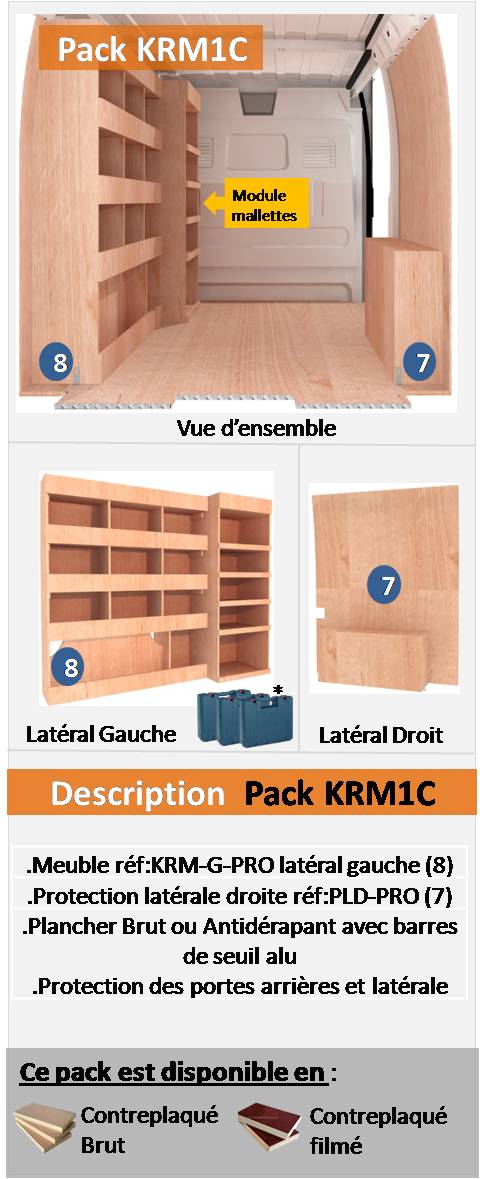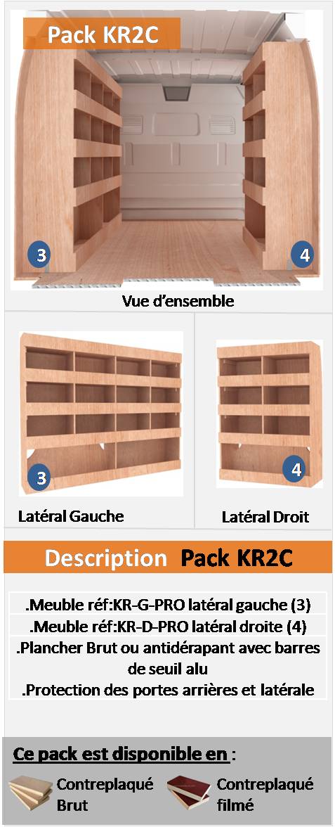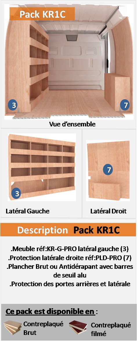 Gagnez du temps avec nos packs complets d’aménagements pour votre véhicule utilitaire; nous avons sélectionnés les configurations les plus demandés par nos clients et nous vous les proposons sous forme de packs tout compris. Ils sont constitués d’un plancher (brut ou antidérapant) , des protections des portes arrières et porte latérale ainsi que de un ou deux meubles, ou bien d’un établi. Si vous souhaitez des meubles avec des options, nous vous invitons à visiter notre page << A la carte >> sur laquelle vous trouverez une sélection de meubles pour votre fourgon intégrants des tiroirs, des clapets, vestiaires etc…