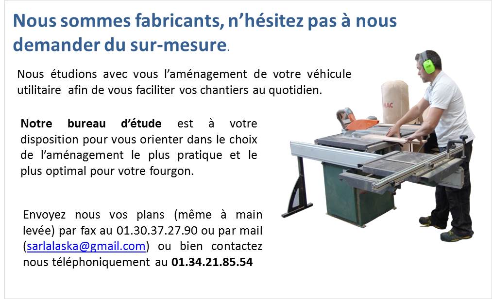 La société ALASKA regroupe le bureau d’étude et l’atelier, ce qui permet de concevoir et fabriquer tous nos meubles bois pour aménager les véhicules utilitaires des artisans. Nous avons l’expérience des aménagements bois qui conviennent à chaque corps d’état.