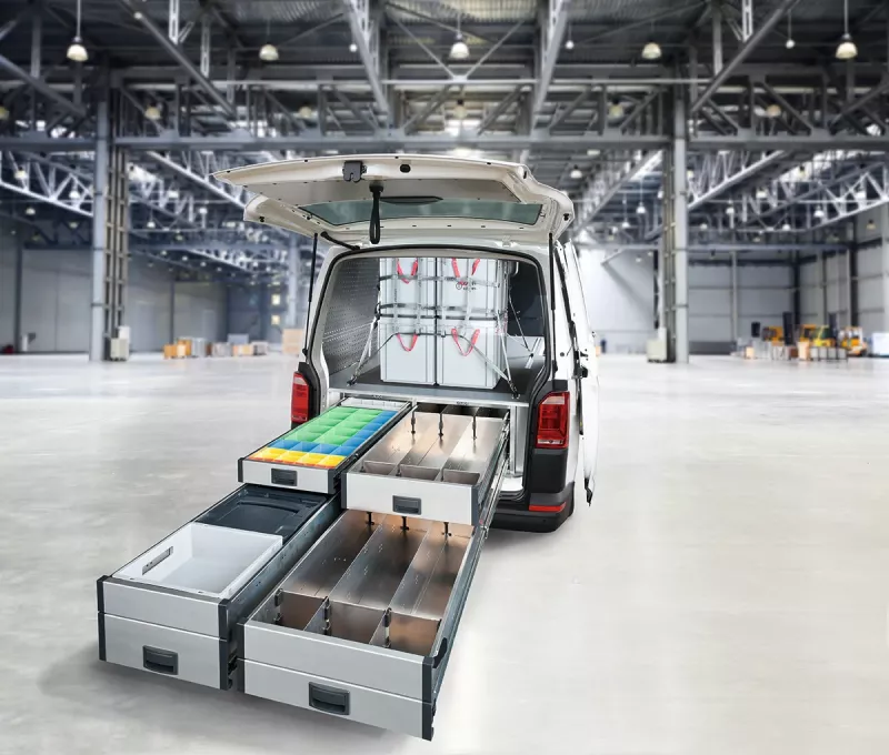 ALASKA France vous propose une gamme complète d’aménagements aluminium sur-mesure pour véhicules utilitaires, conçus pour répondre à tous vos besoins professionnels. Que vous soyez artisan, commerçant, livreur ou tout simplement à la recherche d’une solution de rangement pratique et flexible pour votre van, nous avons la solution idéale pour vous.