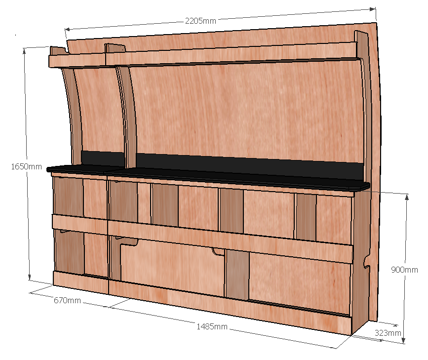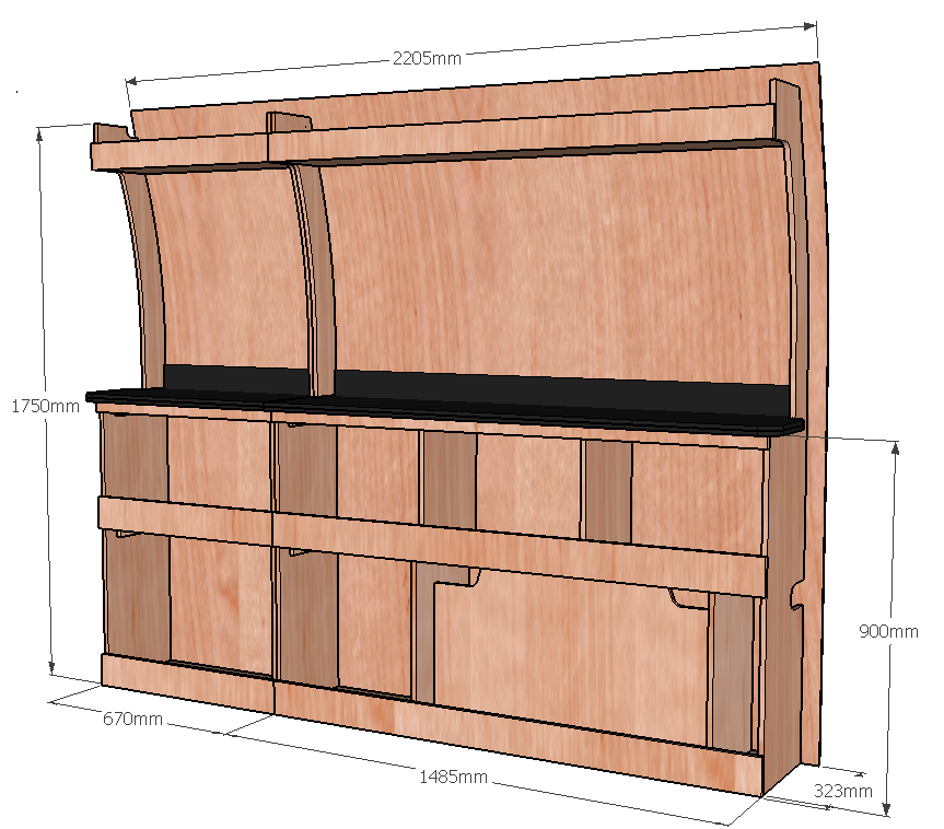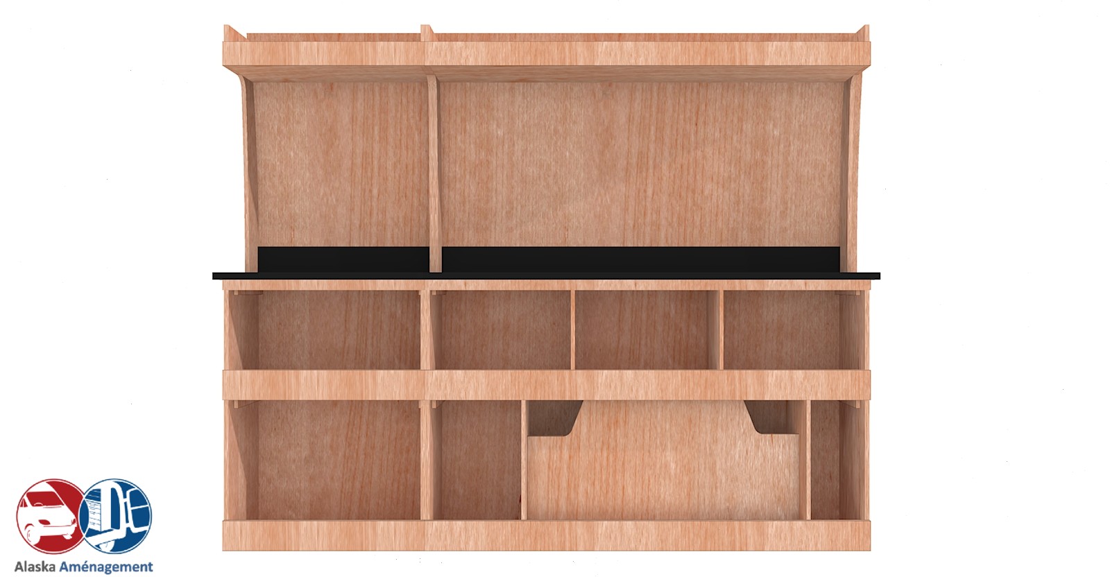 Cet établi robuste ETAD104-N (pour le latéral « droite » de votre véhicule) avec plan de travail renforcé et casiers de rangement, est conçu pour les artisans exigeants. Une étagère supérieure accueille vos grandes longueurs, tandis que le fond arrière intégré (8 mm) protège efficacement la carrosserie et renforce la rigidité. Ce meuble est disponible en contreplaqué brut ou filmé. |
