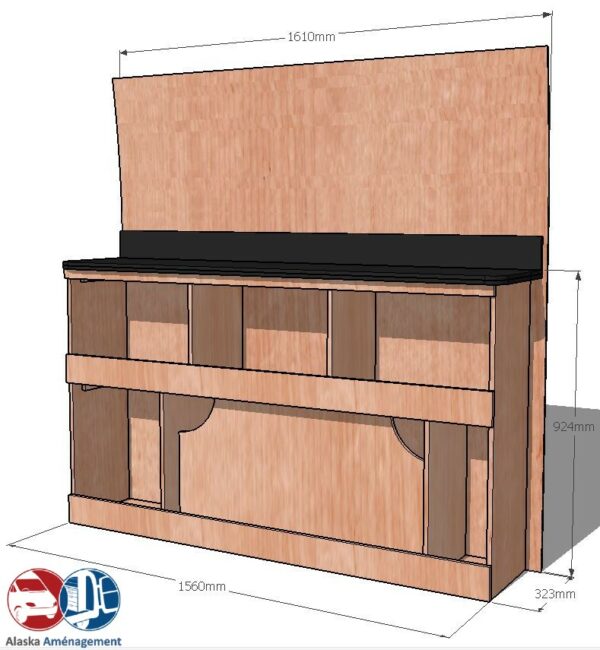 Structure Renforcée et Protectrice : Le meuble intègre un fond arrière de 8 mm qui renforce sa structure et le solidarise. Un avantage économique direct pour vous : il protège efficacement la carrosserie de votre fourgon, vous dispensant d’installer un habillage latéral supplémentaire !