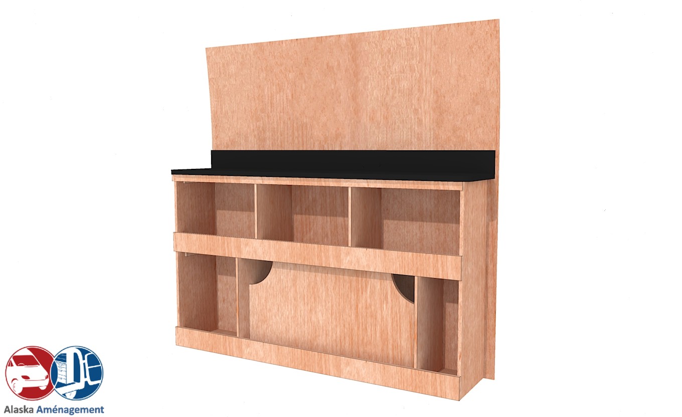 • Structure Renforcée et Protectrice : Le meuble intègre un fond arrière de 8 mm qui renforce sa structure et le solidarise. Un avantage économique direct pour vous : il protège efficacement la carrosserie de votre fourgon, vous dispensant d’installer un habillage latéral supplémentaire !