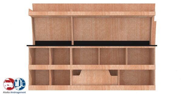 Cet établi robuste ETAD104-N (pour le latéral « droite » de votre véhicule) avec plan de travail renforcé et casiers de rangement, est conçu pour les artisans exigeants. Le fond arrière intégré (8 mm) protège efficacement la carrosserie et renforce la rigidité. Ce meuble est disponible en contreplaqué brut ou filmé. |