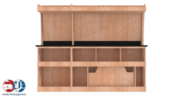Structure Renforcée et Protectrice : Le meuble intègre un fond arrière de 8 mm qui renforce sa structure et le solidarise. Un avantage économique direct pour vous : il protège efficacement la carrosserie de votre fourgon, vous dispensant d’installer un habillage latéral supplémentaire !