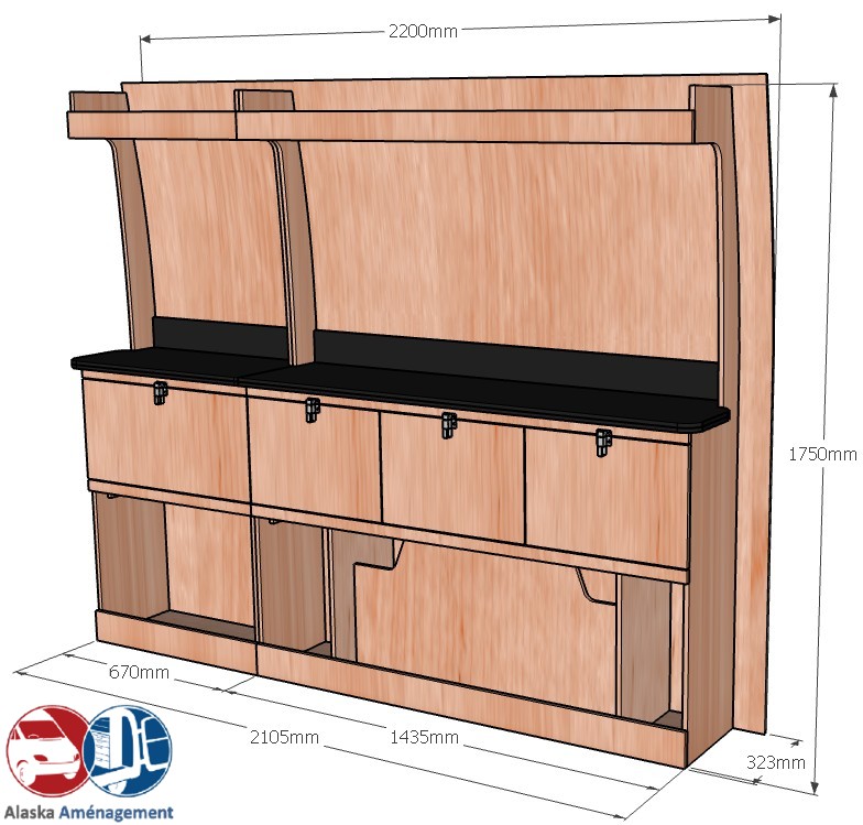 • Structure Renforcée et Protectrice : Le meuble intègre un fond arrière de 8 mm qui renforce sa structure et le solidarise. Un avantage économique direct pour vous : il protège efficacement la carrosserie de votre fourgon, vous dispensant d’installer un habillage latéral supplémentaire !