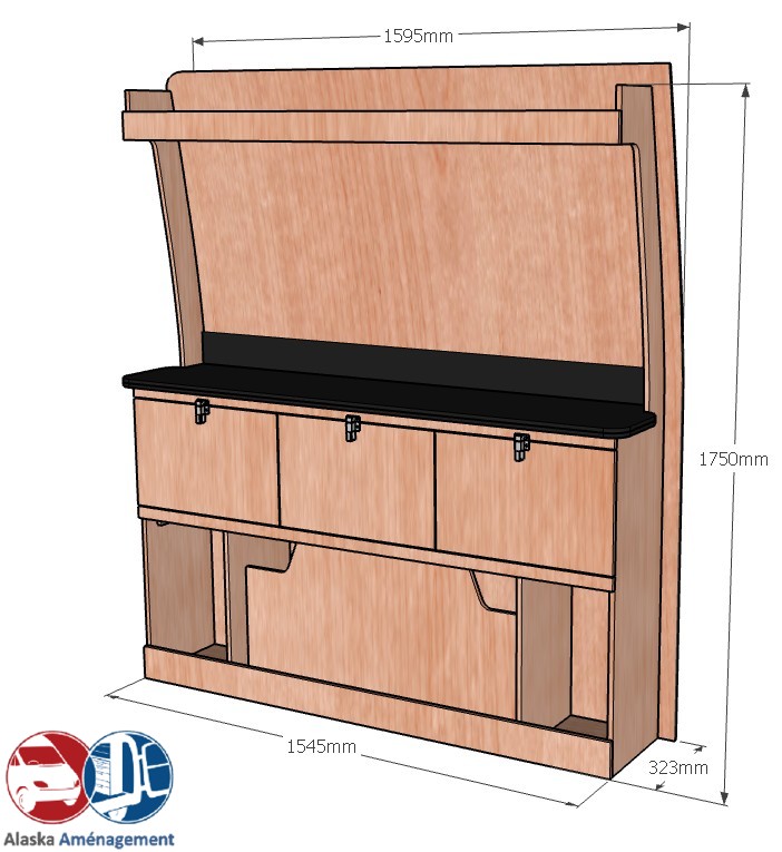 • Structure Renforcée et Protectrice : Le meuble intègre un fond arrière de 8 mm qui renforce sa structure et le solidarise. Un avantage économique direct pour vous : il protège efficacement la carrosserie de votre fourgon, vous dispensant d’installer un habillage latéral supplémentaire !