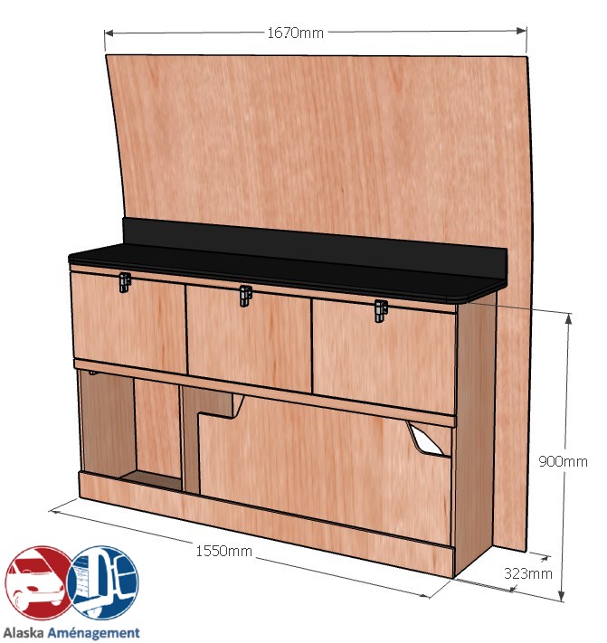 • Structure Renforcée et Protectrice : Le meuble intègre un fond arrière de 8 mm qui renforce sa structure et le solidarise. Un avantage économique direct pour vous : il protège efficacement la carrosserie de votre fourgon, vous dispensant d’installer un habillage latéral supplémentaire !