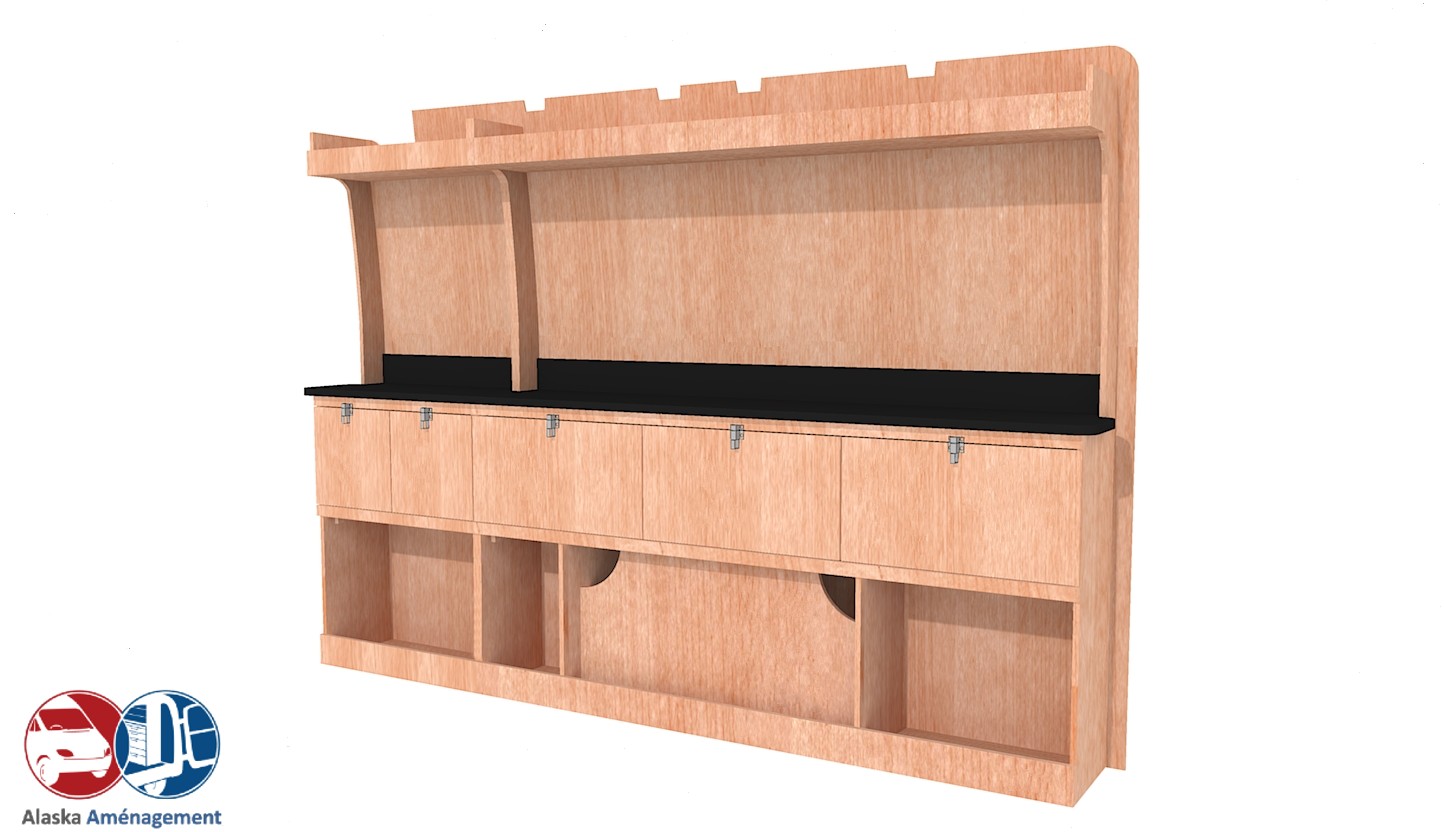 Structure Renforcée et Protectrice : Le meuble intègre un fond arrière de 8 mm qui renforce sa structure et le solidarise. Un avantage économique direct pour vous : il protège efficacement la carrosserie de votre fourgon, vous dispensant d’installer un habillage latéral supplémentaire !