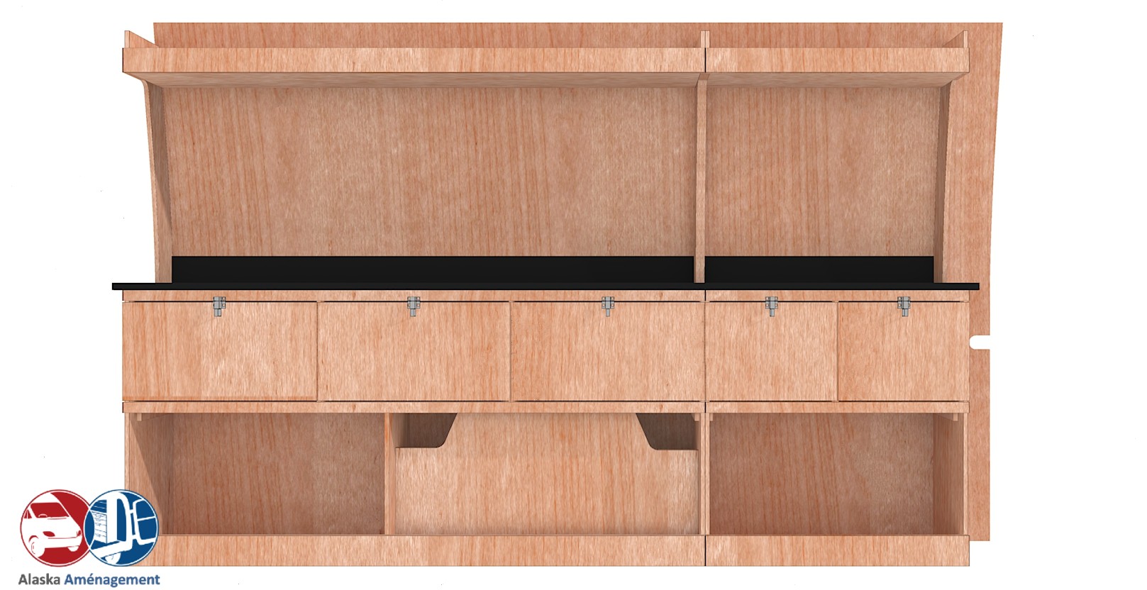 | Établi avec clapets intégrés, parfait pour travailler dans le véhicule.
