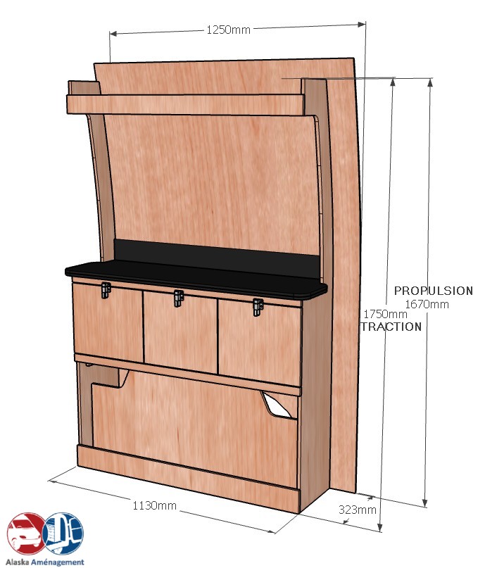 • Structure Renforcée et Protectrice : Le meuble intègre un fond arrière de 8 mm qui renforce sa structure et le solidarise. Un avantage économique direct pour vous : il protège efficacement la carrosserie de votre fourgon, vous dispensant d’installer un habillage latéral supplémentaire !