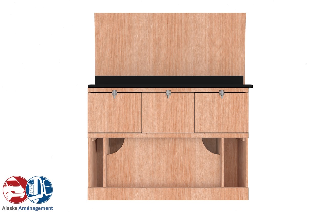 • Structure Renforcée et Protectrice : Le meuble intègre un fond arrière de 8 mm qui renforce sa structure et le solidarise. Un avantage économique direct pour vous : il protège efficacement la carrosserie de votre fourgon, vous dispensant d’installer un habillage latéral supplémentaire !