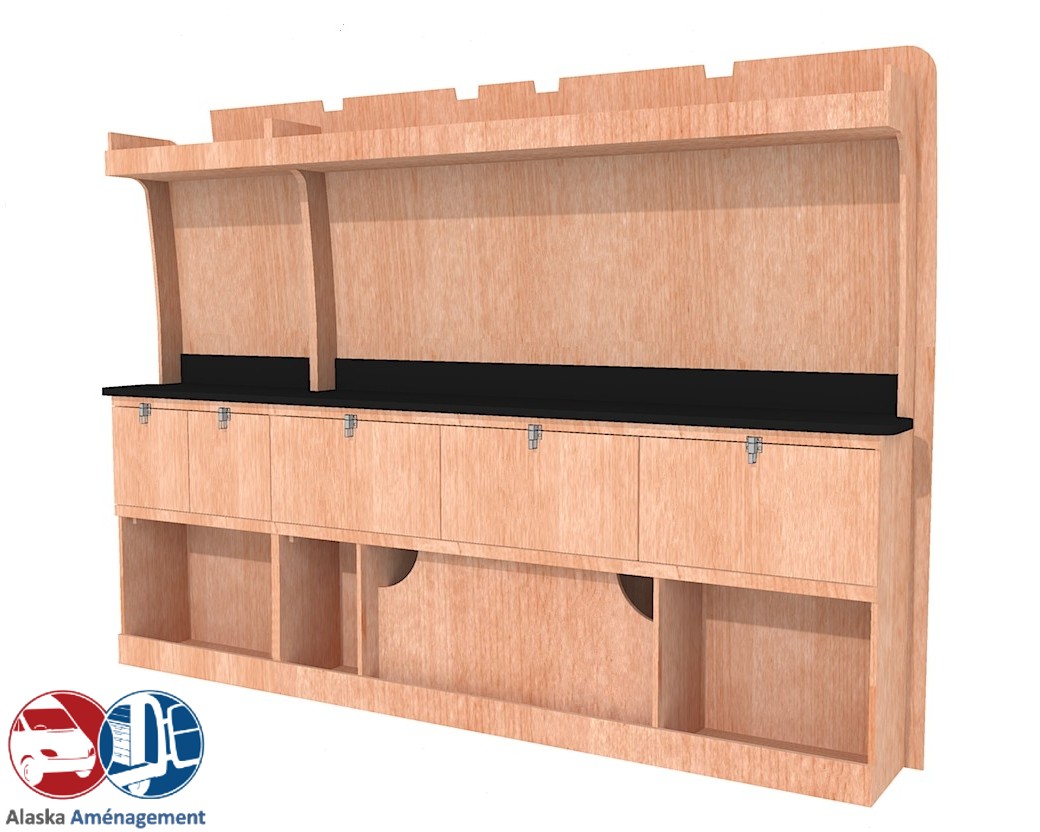 Structure Renforcée et Protectrice : Le meuble intègre un fond arrière de 8 mm qui renforce sa structure et le solidarise. Un avantage économique direct pour vous : il protège efficacement la carrosserie de votre fourgon, vous dispensant d’installer un habillage latéral supplémentaire !