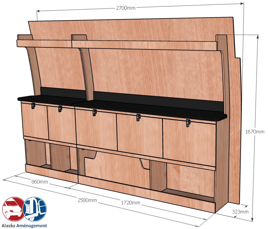 • Structure Renforcée et Protectrice : Le meuble intègre un fond arrière de 8 mm qui renforce sa structure et le solidarise. Un avantage économique direct pour vous : il protège efficacement la carrosserie de votre fourgon, vous dispensant d’installer un habillage latéral supplémentaire !