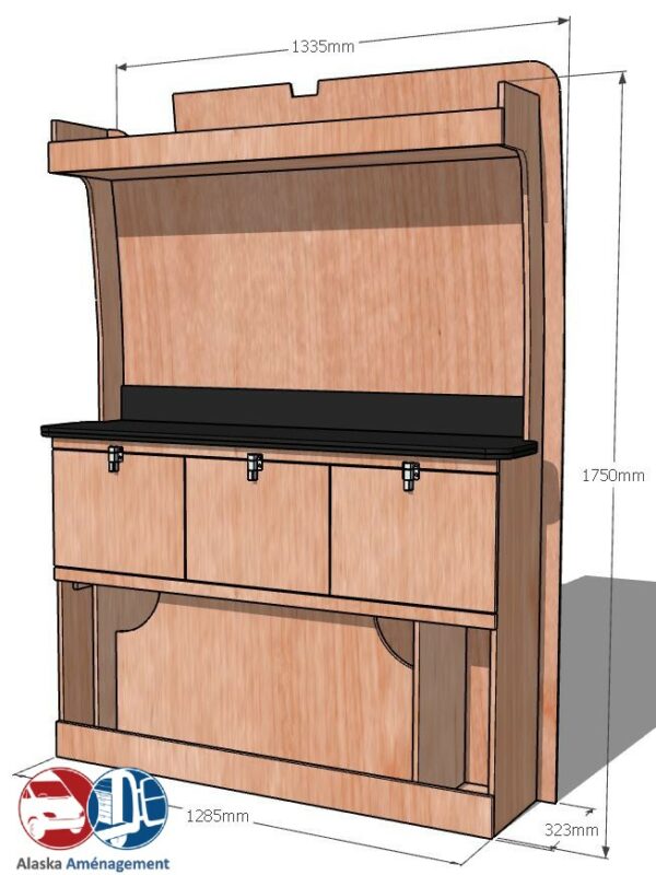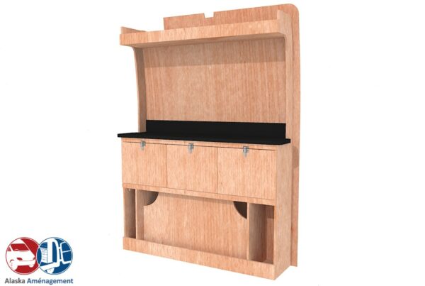 Structure Renforcée et Protectrice : Le meuble intègre un fond arrière de 8 mm qui renforce sa structure et le solidarise. Un avantage économique direct pour vous : il protège efficacement la carrosserie de votre fourgon, vous dispensant d’installer un habillage latéral supplémentaire !