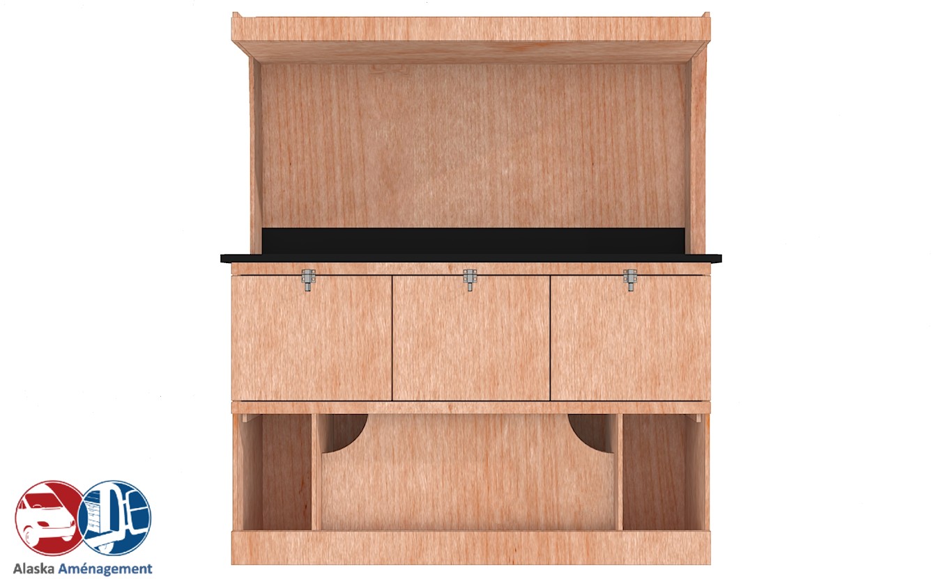 • Structure Renforcée et Protectrice : Le meuble intègre un fond arrière de 8 mm qui renforce sa structure et le solidarise. Un avantage économique direct pour vous : il protège efficacement la carrosserie de votre fourgon, vous dispensant d’installer un habillage latéral supplémentaire !