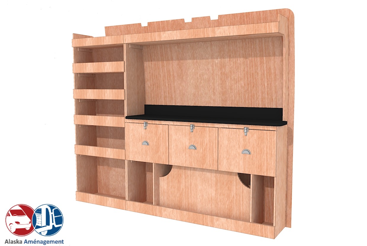 Structure Renforcée et Protectrice : Le meuble intègre un fond arrière de 8 mm qui renforce sa structure et le solidarise. Un avantage économique direct pour vous : il protège efficacement la carrosserie de votre fourgon, vous dispensant d’installer un habillage latéral supplémentaire !