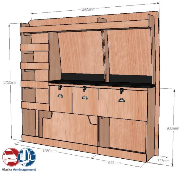 Structure Renforcée et Protectrice : Le meuble intègre un fond arrière de 8 mm qui renforce sa structure et le solidarise. Un avantage économique direct pour vous : il protège efficacement la carrosserie de votre fourgon, vous dispensant d’installer un habillage latéral supplémentaire !