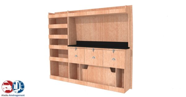 Structure Renforcée et Protectrice : Le meuble intègre un fond arrière de 8 mm qui renforce sa structure et le solidarise. Un avantage économique direct pour vous : il protège efficacement la carrosserie de votre fourgon, vous dispensant d’installer un habillage latéral supplémentaire !