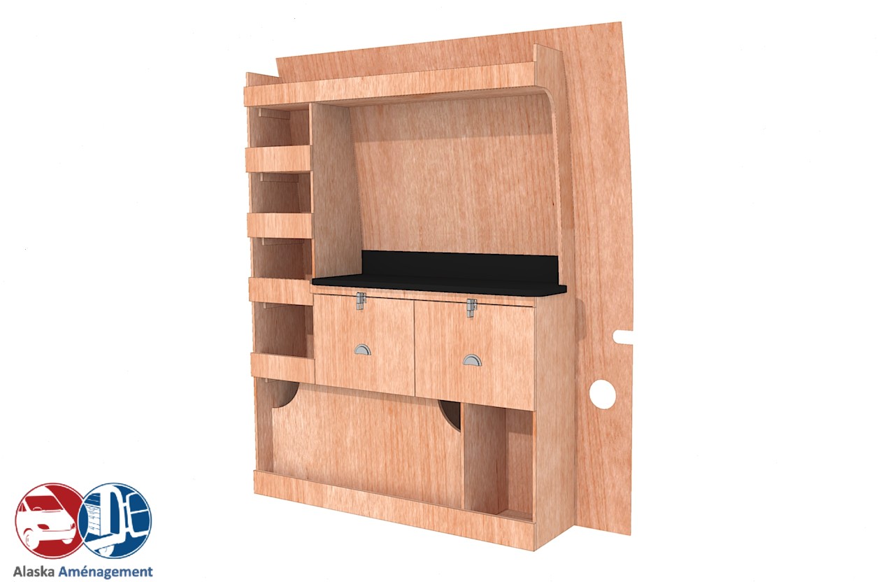Structure Renforcée et Protectrice : Le meuble intègre un fond arrière de 8 mm qui renforce sa structure et le solidarise. Un avantage économique direct pour vous : il protège efficacement la carrosserie de votre fourgon, vous dispensant d’installer un habillage latéral supplémentaire !