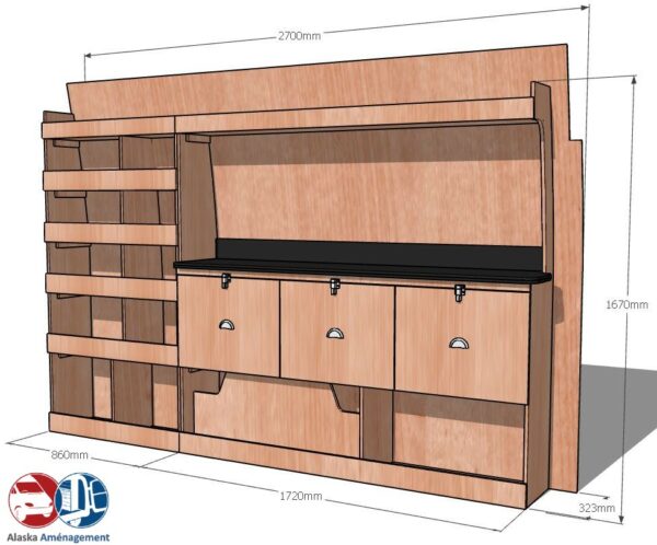• Structure Renforcée et Protectrice : Le meuble intègre un fond arrière de 8 mm qui renforce sa structure et le solidarise. Un avantage économique direct pour vous : il protège efficacement la carrosserie de votre fourgon, vous dispensant d’installer un habillage latéral supplémentaire !