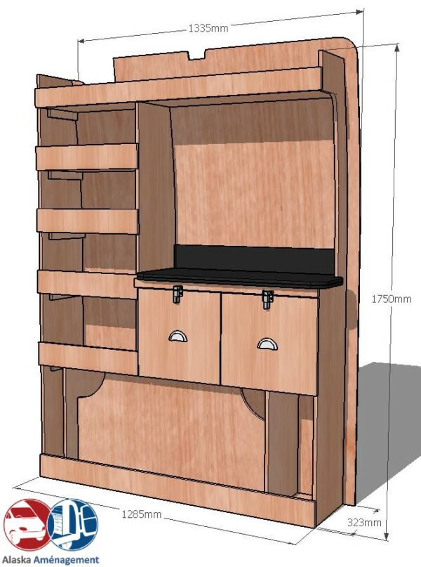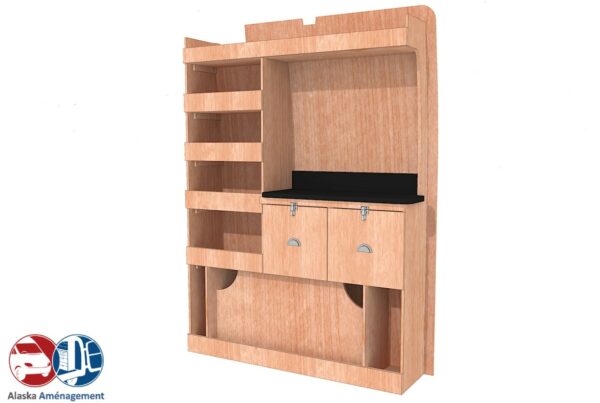 Structure Renforcée et Protectrice : Le meuble intègre un fond arrière de 8 mm qui renforce sa structure et le solidarise. Un avantage économique direct pour vous : il protège efficacement la carrosserie de votre fourgon, vous dispensant d’installer un habillage latéral supplémentaire !
