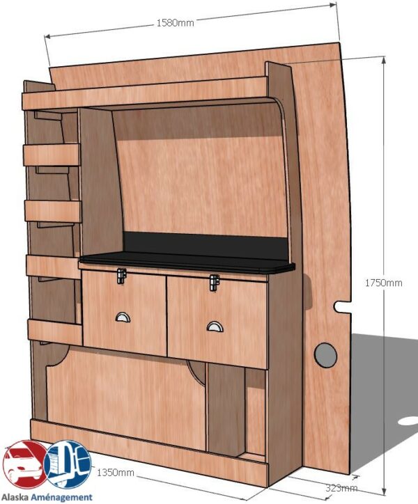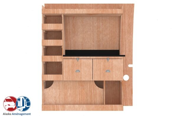 • Structure Renforcée et Protectrice : Le meuble intègre un fond arrière de 8 mm qui renforce sa structure et le solidarise. Un avantage économique direct pour vous : il protège efficacement la carrosserie de votre fourgon, vous dispensant d’installer un habillage latéral supplémentaire !