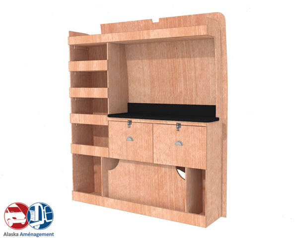 Structure Renforcée et Protectrice : Le meuble intègre un fond arrière de 8 mm qui renforce sa structure et le solidarise. Un avantage économique direct pour vous : il protège efficacement la carrosserie de votre fourgon, vous dispensant d’installer un habillage latéral supplémentaire !