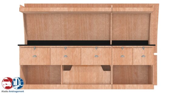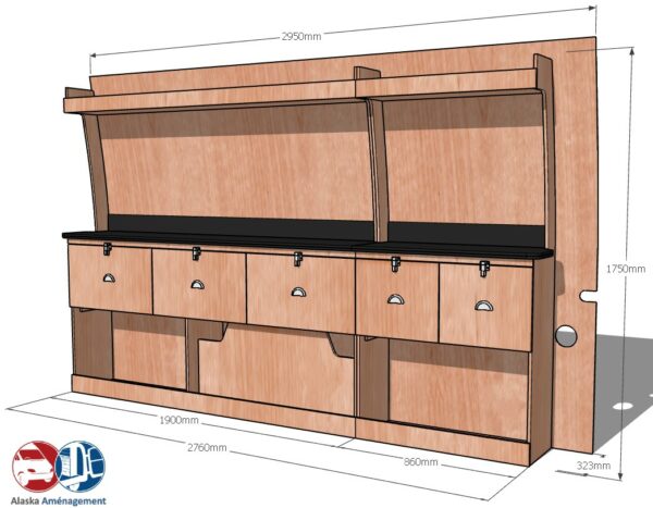 Structure Renforcée et Protectrice : Le meuble intègre un fond arrière de 8 mm qui renforce sa structure et le solidarise. Un avantage économique direct pour vous : il protège efficacement la carrosserie de votre fourgon, vous dispensant d’installer un habillage latéral supplémentaire !