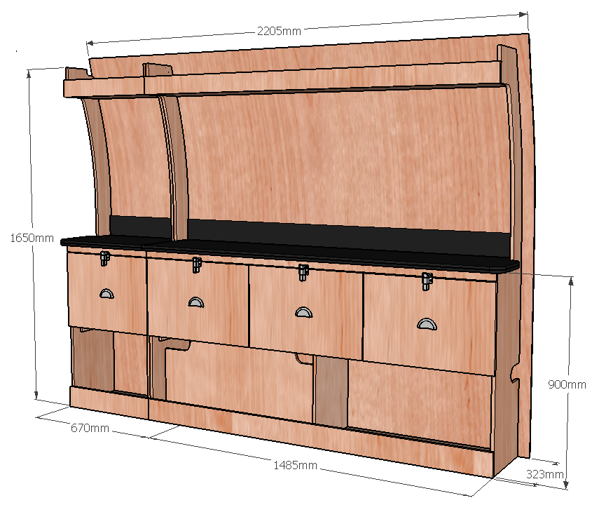 • Dimensions de votre meuble: (Propulsion) L.2155mm x H.1650mm x P.323mm