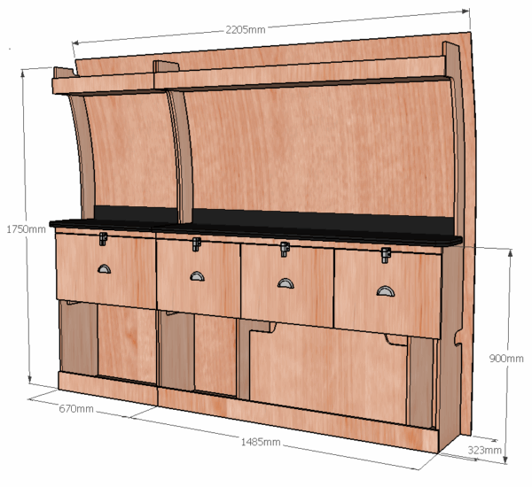 • Dimensions de votre meuble: (Traction) L.2155mm x H.1750mm x P.323mm