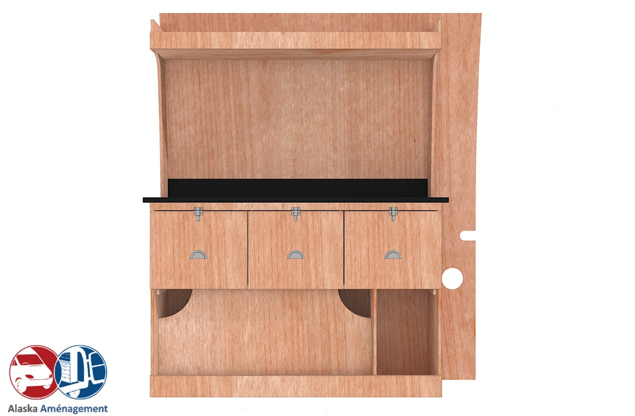 Cet établi robuste ETAD107-N (pour le latéral « droite » de votre véhicule) avec plan de travail renforcé et tiroirs robustes est conçu pour les artisans exigeants. Une étagère supérieure accueille vos grandes longueurs, tandis que le fond arrière intégré (8 mm) protège efficacement la carrosserie et renforce la rigidité. Ce meuble est disponible en contreplaqué brut ou filmé. |