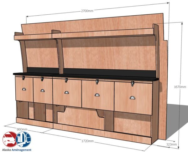 • Structure Renforcée et Protectrice : Le meuble intègre un fond arrière de 8 mm qui renforce sa structure et le solidarise. Un avantage économique direct pour vous : il protège efficacement la carrosserie de votre fourgon, vous dispensant d’installer un habillage latéral supplémentaire !