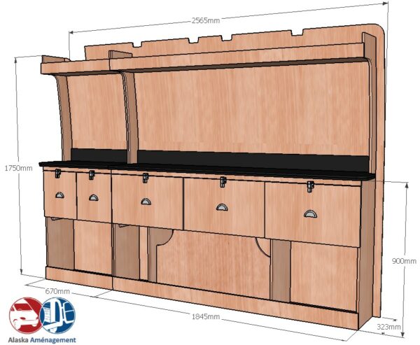 • Structure Renforcée et Protectrice : Le meuble intègre un fond arrière de 8 mm qui renforce sa structure et le solidarise. Un avantage économique direct pour vous : il protège efficacement la carrosserie de votre fourgon, vous dispensant d’installer un habillage latéral supplémentaire !