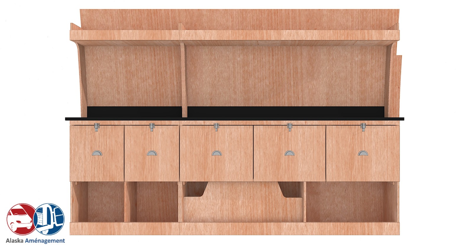 • Structure Renforcée et Protectrice : Le meuble intègre un fond arrière de 8 mm qui renforce sa structure et le solidarise. Un avantage économique direct pour vous : il protège efficacement la carrosserie de votre fourgon, vous dispensant d’installer un habillage latéral supplémentaire !