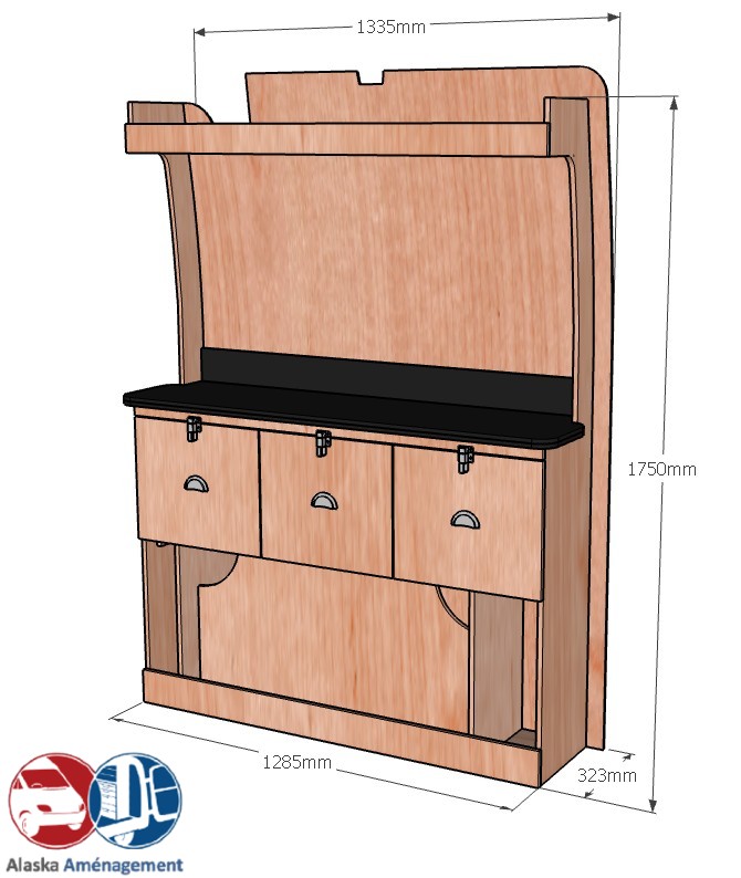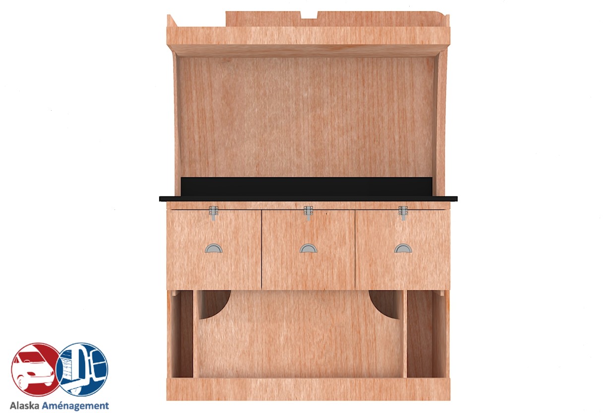 • Structure Renforcée et Protectrice : Le meuble intègre un fond arrière de 8 mm qui renforce sa structure et le solidarise. Un avantage économique direct pour vous : il protège efficacement la carrosserie de votre fourgon, vous dispensant d’installer un habillage latéral supplémentaire !