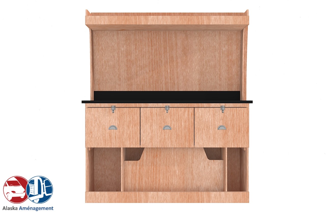 Cet établi robuste ETAD107-N (pour le latéral « droite » de votre véhicule) avec plan de travail renforcé et tiroirs robustes est conçu pour les artisans exigeants. Une étagère supérieure accueille vos grandes longueurs, tandis que le fond arrière intégré (8 mm) protège efficacement la carrosserie et renforce la rigidité. Ce meuble est disponible en contreplaqué brut ou filmé. |