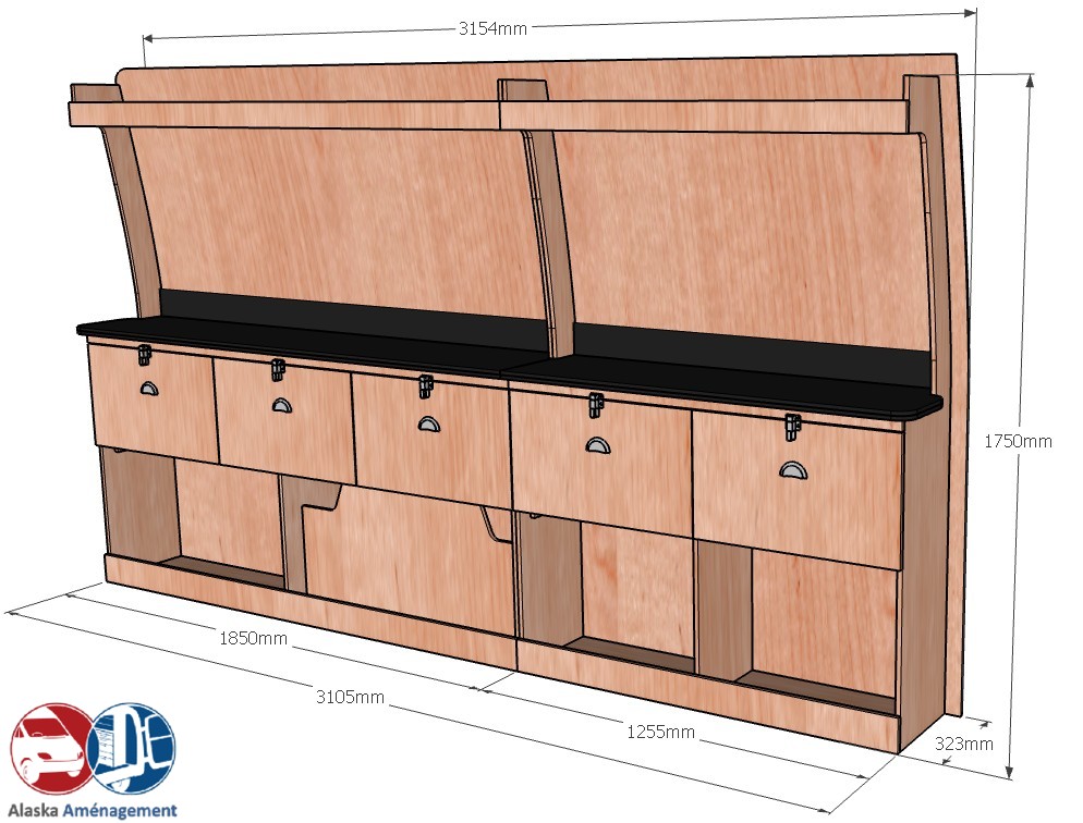 • Structure Renforcée et Protectrice : Le meuble intègre un fond arrière de 8 mm qui renforce sa structure et le solidarise. Un avantage économique direct pour vous : il protège efficacement la carrosserie de votre fourgon, vous dispensant d’installer un habillage latéral supplémentaire !