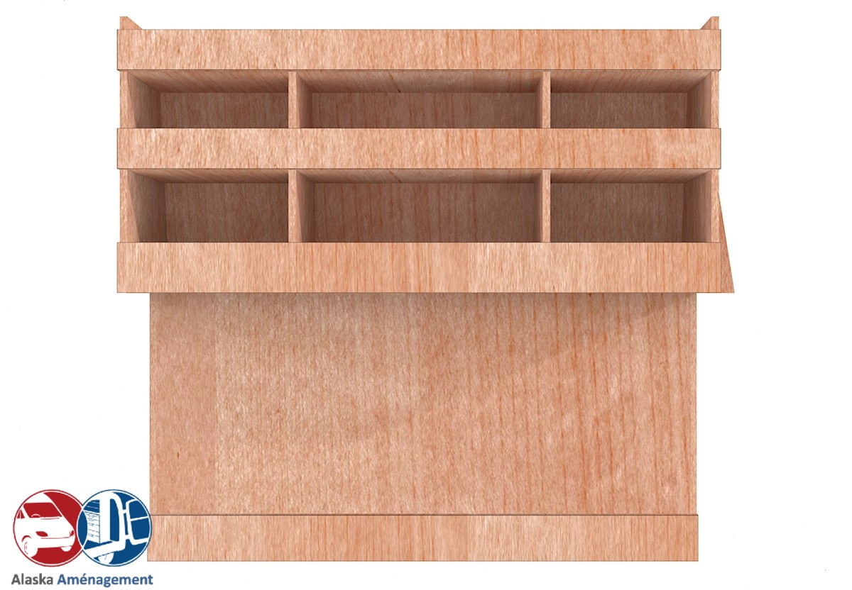 Ce meuble de rangement KRD-DC-N (pour le latéral « Droite » de votre véhicule) offre une solution de stockage polyvalente et fonctionnelle avec trois niveaux de stockage. Il comprend des étagères pour stocker divers équipements et matériels. Une étagère supérieure est conçue pour les objets longs. Son fond arrière intégré et sa protection de passage de roue assurent la rigidité et protège la carrosserie du véhicule, évitant un habillage supplémentaire. Le meuble est disponible en contreplaqué brut ou filmé. |