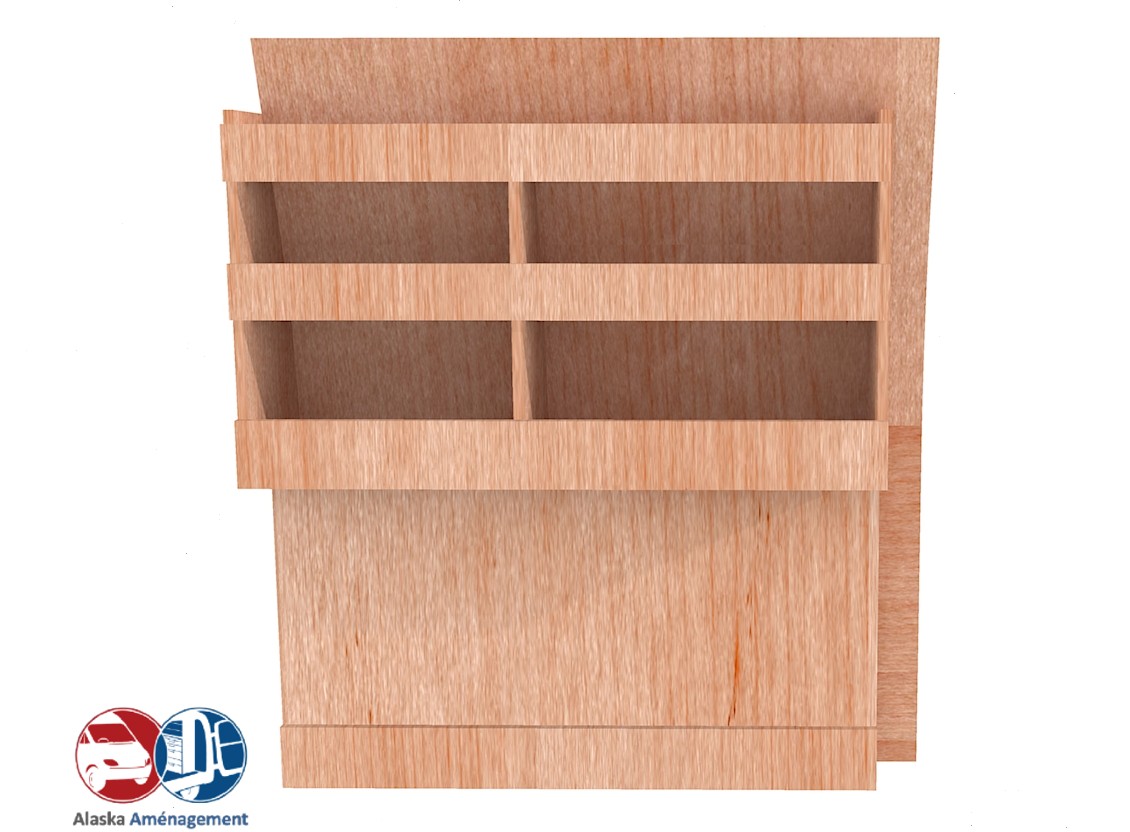 Ce meuble de rangement KRD-DC-N (pour le latéral « Droite » de votre véhicule) offre une solution de stockage polyvalente et fonctionnelle avec trois niveaux de stockage. Il comprend des étagères pour stocker divers équipements et matériels. Une étagère supérieure est conçue pour les objets longs. Son fond arrière intégré et sa protection de passage de roue assurent la rigidité et protège la carrosserie du véhicule, évitant un habillage supplémentaire. Le meuble est disponible en contreplaqué brut ou filmé. |