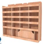 Ce meuble de rangement KRD-N (pour le latéral « Droite » de votre véhicule) offre une solution de stockage polyvalente et fonctionnelle avec six niveaux de stockage. Il comprend des étagères pour stocker divers équipements et matériels. Une étagère supérieure est conçue pour les objets longs. Son fond arrière intégré assure la rigidité et protège la carrosserie du véhicule, évitant un habillage supplémentaire. Le meuble est disponible en contreplaqué brut ou filmé.