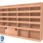 Ce meuble de rangement KRD-N (pour le latéral « Droite » de votre véhicule) offre une solution de stockage polyvalente et fonctionnelle avec six niveaux de stockage. Il comprend des étagères pour stocker divers équipements et matériels. Une étagère supérieure est conçue pour les objets longs. Son fond arrière intégré assure la rigidité et protège la carrosserie du véhicule, évitant un habillage supplémentaire. Le meuble est disponible en contreplaqué brut ou filmé.
