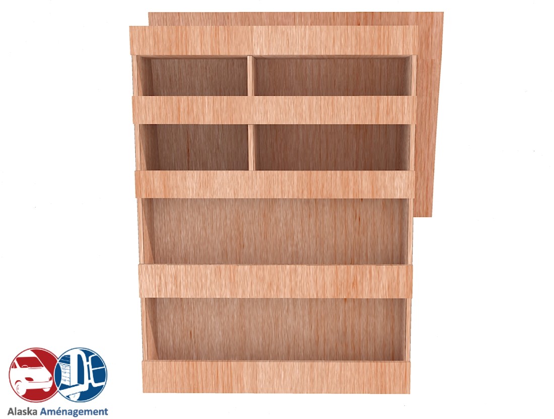 Ce meuble de rangement KRD-N (pour le latéral « Droite » de votre véhicule) offre une solution de stockage polyvalente et fonctionnelle avec cinq niveaux de stockage. Il comprend des étagères pour stocker divers équipements et matériels. Une étagère supérieure est conçue pour les objets longs. Son fond arrière intégré assure la rigidité et protège la carrosserie du véhicule, évitant un habillage supplémentaire. Le meuble est disponible en contreplaqué brut ou filmé.