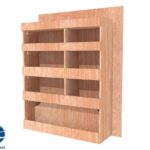 Ce meuble de rangement KRD-N (pour le latéral « Droite » de votre véhicule) offre une solution de stockage polyvalente et fonctionnelle avec cinq niveaux de stockage. Il comprend des étagères pour stocker divers équipements et matériels. Une étagère supérieure est conçue pour les objets longs. Son fond arrière intégré assure la rigidité et protège la carrosserie du véhicule, évitant un habillage supplémentaire. Le meuble est disponible en contreplaqué brut ou filmé.