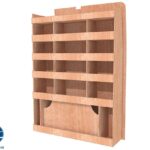 Ce meuble de rangement KRD-N (pour le latéral « Droite » de votre véhicule) offre une solution de stockage polyvalente et fonctionnelle avec cinq niveaux de stockage. Il comprend des étagères pour stocker divers équipements et matériels. Une étagère supérieure est conçue pour les objets longs. Son fond arrière intégré assure la rigidité et protège la carrosserie du véhicule, évitant un habillage supplémentaire. Le meuble est disponible en contreplaqué brut ou filmé.