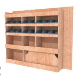 Ce meuble de rangement KRD101-N (pour le latéral « Droite » de votre véhicule) offre une solution de stockage polyvalente et fonctionnelle avec cinq niveaux de stockage. Il comprend des étagères pour bacs à bec pour ranger toutes vos petites pièces. Une étagère supérieure est conçue pour les objets longs. Son fond arrière intégré assure la rigidité et protège la carrosserie du véhicule, évitant un habillage supplémentaire. Le meuble est disponible en contreplaqué brut ou filmé.