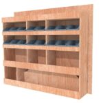 Ce meuble de rangement KRD101-N (pour le latéral « Droite » de votre véhicule) offre une solution de stockage polyvalente et fonctionnelle avec cinq niveaux de stockage. Il comprend des étagères pour bacs à bec pour ranger toutes vos petites pièces. Une étagère supérieure est conçue pour les objets longs. Son fond arrière intégré assure la rigidité et protège la carrosserie du véhicule, évitant un habillage supplémentaire. Le meuble est disponible en contreplaqué brut ou filmé.