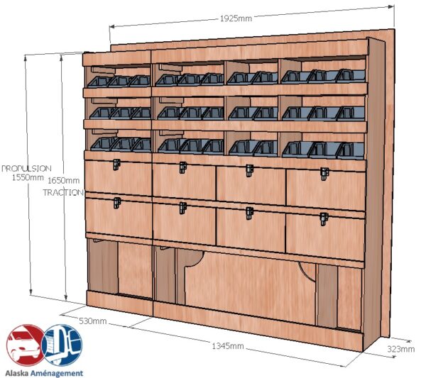 • Structure Renforcée et Protectrice : Le meuble intègre un fond arrière de 8 mm qui renforce sa structure et le solidarise. Un avantage économique direct pour vous : il protège efficacement la carrosserie de votre fourgon, vous dispensant d’installer un habillage latéral supplémentaire !