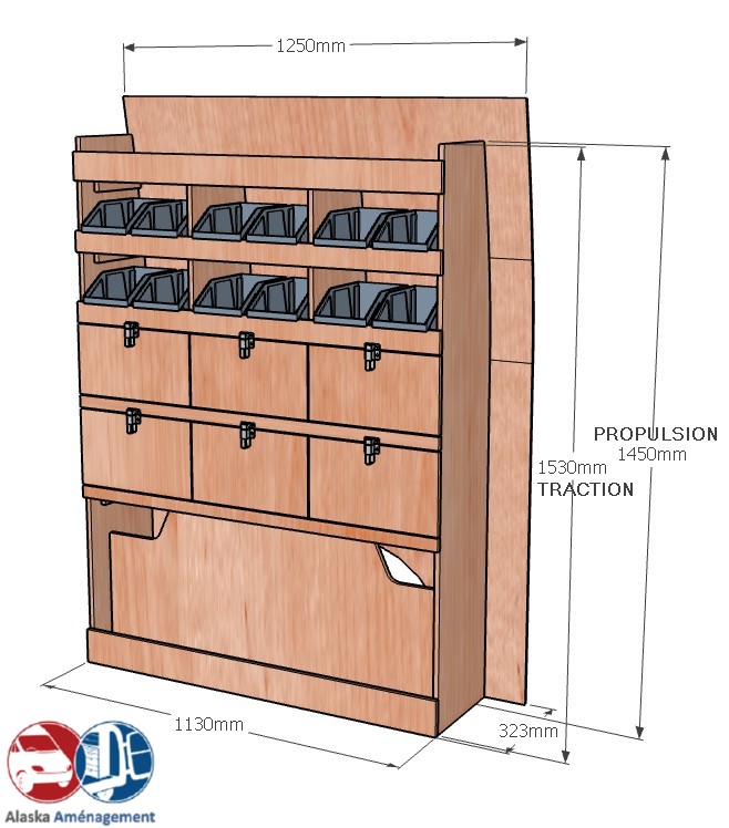 • Dimensions de votre meuble: (Propulsion) L.1130mm x H.1450mm x P.323mm