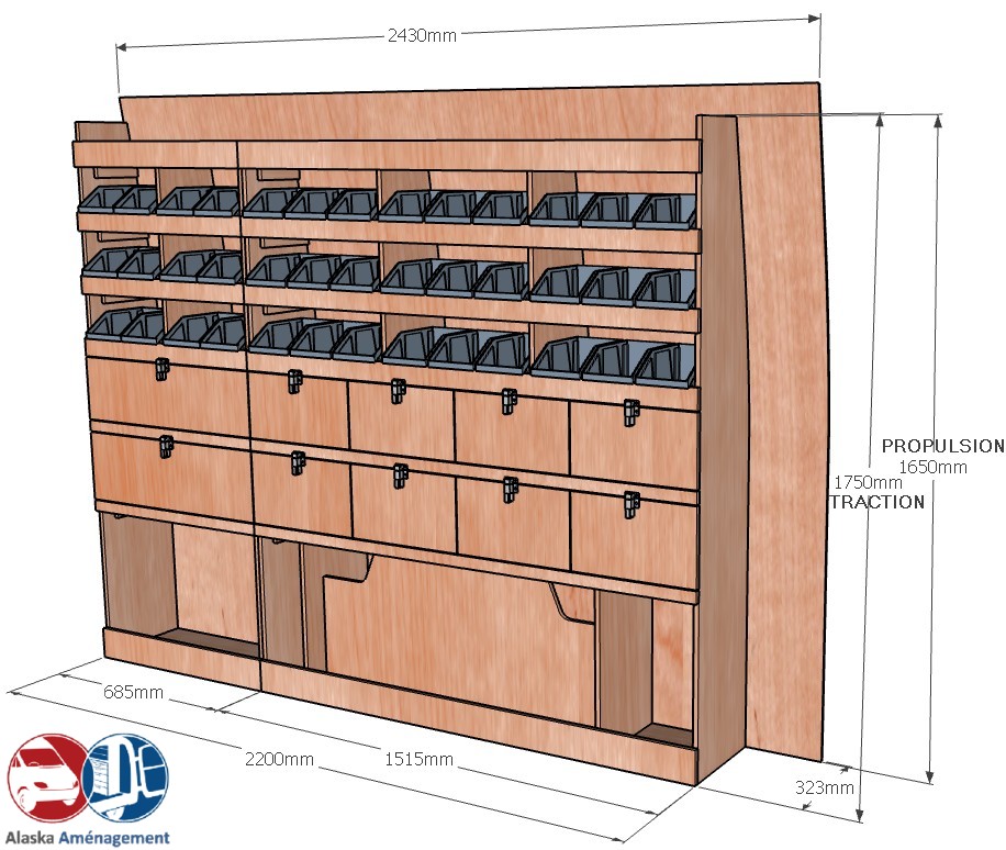 • Structure Renforcée et Protectrice : Le meuble intègre un fond arrière de 8 mm qui renforce sa structure et le solidarise. Un avantage économique direct pour vous : il protège efficacement la carrosserie de votre fourgon, vous dispensant d’installer un habillage latéral supplémentaire !